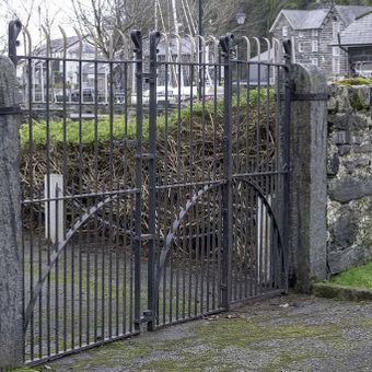 Gates, gate piers and flanking walls at S entrance to church of St John