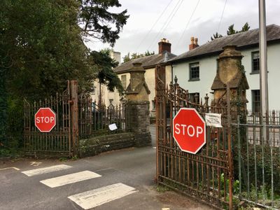 Gate and Railings of The Drama Centre, Grade II listed building in Monmouthshire. On the east side of Pen-y-pound fronting The Drama Centre and one of the varied group of historic buildings on the main north-eastern access to Abergavenny