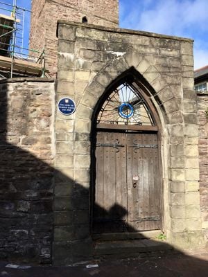 Boundary Wall and Entrance Gateway of St John's Masonic Lodge, Grade II listed building in Monmouthshire. In Abergavenny town centre just to the west of the High Street