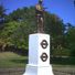 El monumento presenta una columna cuadrada de piedra blanca coronada por una estatua de bronce de tamaño natural de un soldado.
