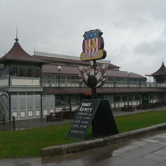 Esplanade Pavilion, former seaside pavilion and theatre in Ryde, Isle of Wight, England, now entrance to a bowling alley