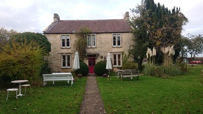 El alojamiento puede recibir hasta 22 huéspedes con múltiples dormitorios y áreas comunes, ubicado a solo 20 minutos del centro de Bath.