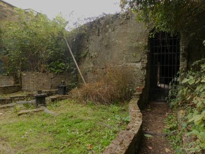Base of the southern water tower to the Crystal Palace including attached low walls, brick-lined trenches and pipework, structure in London Borough of Bromley, UK