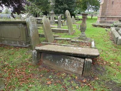 Tombchest of James Phillips, 2 metres south of the sundial in the Churchyard of St Michael, Grade II listed tomb chest in Shotwick, Cheshire, UK
