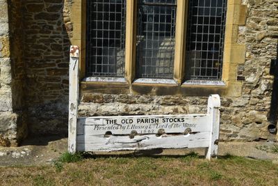Stocks about 1/2 metre south of south aisle of Church of St Michael and All Angels