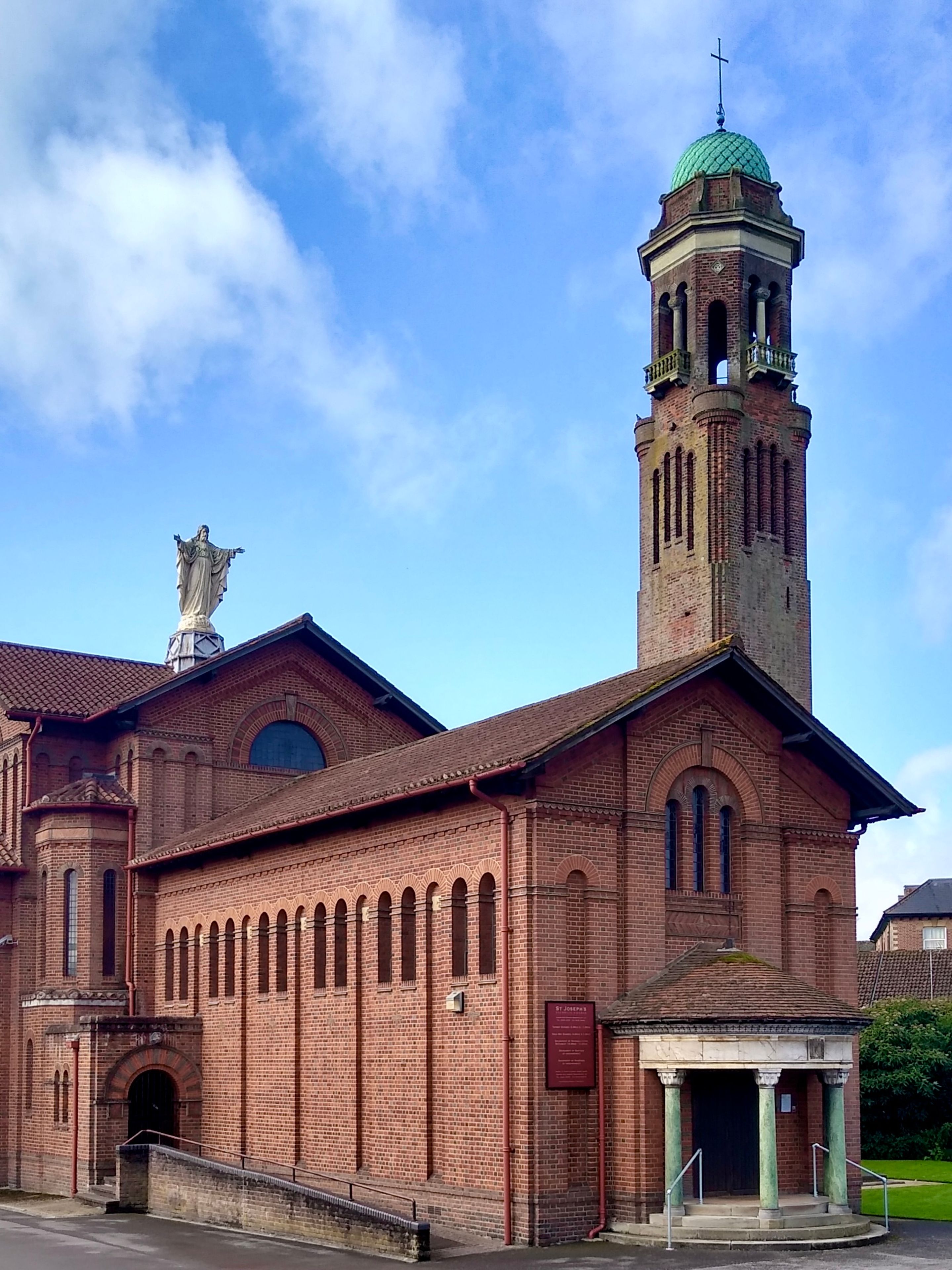 La Iglesia de San José exhibe un diseño arquitectónico italo-bizantino con ladrillos Daneshill multicolores dispuestos en patrones de aparejo inglés en sus muros exteriores.