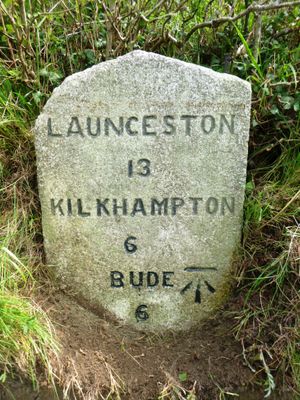 Milestone, N of Jewells Cross, milestone in Launcells, North Cornwall, UK