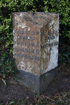 Milepost, opp. Bickerton Church, on cross roads, milepost in Bickerton, Crewe And Nantwich, UK