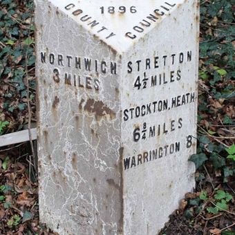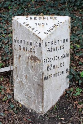 Milepost, S of Great Budworth cross roads, milepost in Great Budworth, Vale Royal, UK