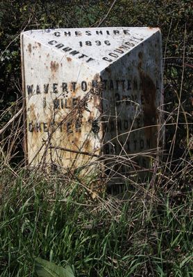 Milepost, Hatton Heath, S of Lodge Farm and Power Movers, milepost in Saighton, Chester, UK