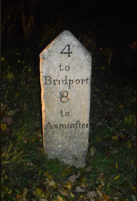 Milestone, Morecombelake; opp. Verriotts Lane, milestone in Stanton St Gabriel, West Dorset, UK