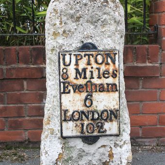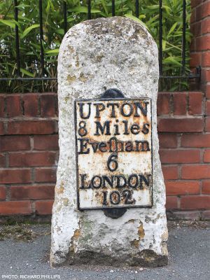 Milestone, Abbey Park, just S of Broad St., by housing estate called 'The Milestone', milestone in Pershore, Wychavon, UK