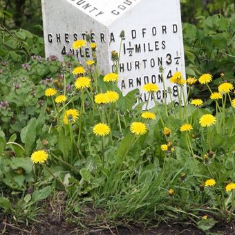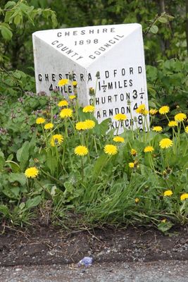 Milepost, Crook of Dee, opp. Cheaveley Hall Cottages, S of Cheaveley Bridge, milepost in Aldford, Chester, UK