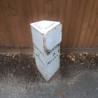 Milepost, Fair Oak; 100m S of bus stop on opposite side of road