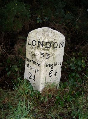 Milestone, Hartford Bridge Flats, W of Yateley Common, milestone in Yateley, Hart, UK
