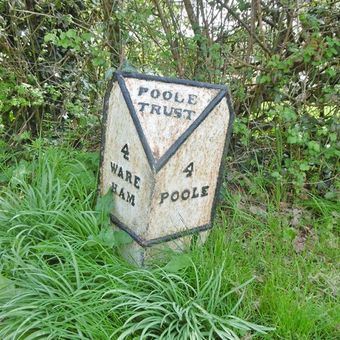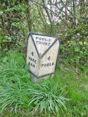 Milepost, Lytchett Minster, opposite Church and School, milepost in Lytchett Minster And Upton, Purbeck, UK