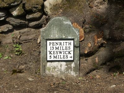 Milestone, Wood End, E end of village, milestone in Threlkeld, Eden, UK