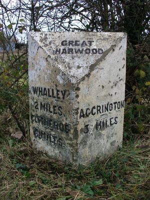 Milepost, Whalley Road, W of village, opp. small wood