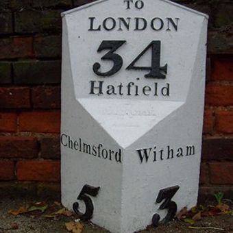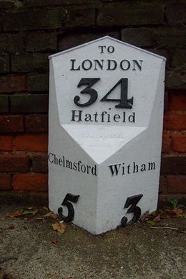 Milepost, between entrances to Crix Farm, opp. Terling Hall Road, milepost in Hatfield Peverel, Braintree, UK