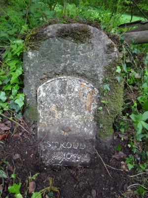 Milestone, Three Mile Bottom; opp. Four Mile Lodge", milestone in Coates, Cotswold, UK
