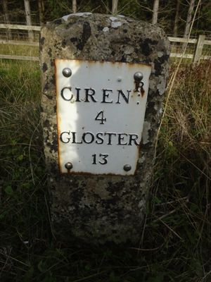 Milestone, N of Dartley farm, milestone in Duntisbourne Abbots, Cotswold, UK