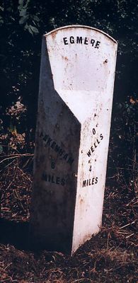 Milepost, 20yds S of double electricity pole whose wires cross road, milepost in Walsingham, North Norfolk, UK