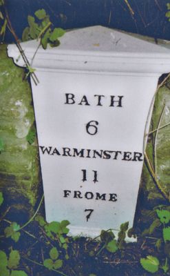 Milepost, between village sign and 30 mph signs on southern edge of Hinton Charterhouse, milepost in Hinton Charterhouse, Bath And North East Somerset, UK