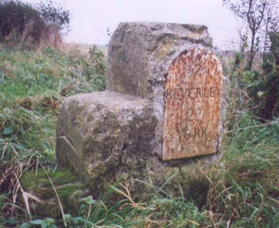 Milestone, W of Hessleskew X rds, milestone in Market Weighton, East Riding Of Yorkshire, UK