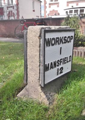 Milestone, Mansfield Road; by No. 232, nr bridle path to Rhodesia, milestone in Worksop, Bassetlaw, UK