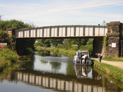 Dockfield Road railway bridge, railway bridge over the Leeds and Liverpool Canal in West Yorkshire, UK