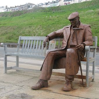 Freddie Gilroy y los Belsen Stragglers es una escultura de acero en North Bay que representa a un soldado sentado en un banco observando el Mar del Norte. La obra muestra una figura humana realizada en acero y ubicada en un lugar público junto a la costa.