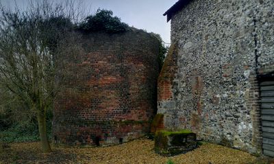 Un secadero de lúpulo permanece junto a la estructura de la iglesia, reflejando la herencia agrícola y las tradiciones cerveceras de la región de Kent.