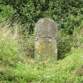 Milestone, Hilltop ; 100m S traffic lights, milestone in Frampton On Severn, Stroud, UK