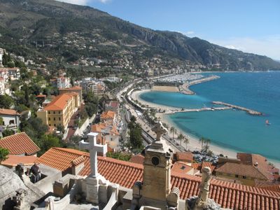 Menton se ubica en la Riviera Francesa entre montañas y el Mar Mediterráneo. La ciudad combina arquitectura francesa e italiana con jardines históricos, museos y edificios religiosos. El puerto, las playas y el paseo marítimo definen el paisaje costero. Instituciones culturales como el Museo Jean Cocteau y el Palacio Carnolès muestran la relevancia artística de la ciudad.
