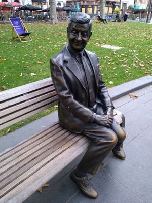 La estatua permite sentarse junto a Mr Bean en el banco, creando oportunidades fotográficas junto a otros personajes cinematográficos de la plaza.