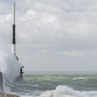 El Digue Nord se adentra en el Canal de la Mancha, creando una barrera protectora que resguarda el puerto de las fuertes olas.