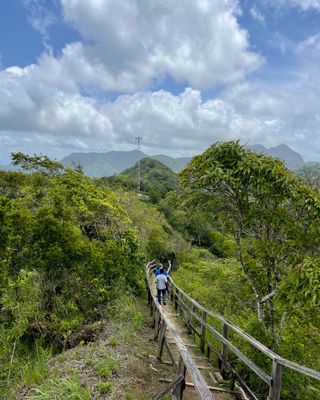 Un punto destacado es la Escalera al Cielo, que sube a un mirador con vista a los dos Pitons en la distancia. Desde este lugar, los visitantes también pueden ver Jalousie Bay y Vieux Fort extendidos sobre el agua.