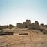 Las ruinas de la antigua ciudad incluyen estructuras de piedra, murallas defensivas y elementos arquitectónicos distribuidos por un paisaje desértico.