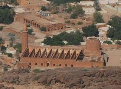 La Gran Mezquita de Kassala tiene varios minaretes y amplias salas de oración situadas contra el telón de fondo del Monte Sufyan en el este de Sudán. La estructura tiene secciones separadas para hombres y mujeres, con instalaciones de ablución ubicadas en el exterior.
