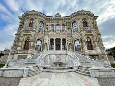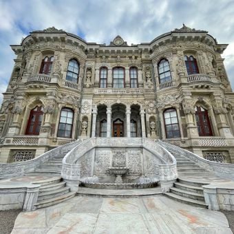 El palacio de piedra de dos plantas se encuentra entre los arroyos Göksu y Küçüksu, con elementos arquitectónicos otomanos y europeos en la ribera del Bósforo.