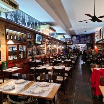 Las paredes están cubiertas de fotografías antiguas de escritores, actores y artistas que se reunían aquí, lo que convierte el comedor en una especie de galería informal. Mirar alrededor mientras se come es parte de la experiencia, ya que cada imagen cuenta algo sobre el pasado cultural de la ciudad.