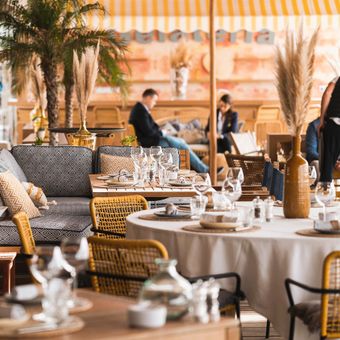 El restaurante sirve cocina mediterránea refinada mientras mantiene vínculos con el Festival de Cine de Cannes mediante su ubicación central y eventos especiales.