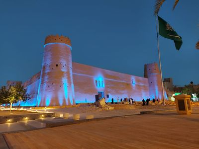 La puerta de la fortaleza conserva la marca de una lanza de la batalla de 1902, representando un momento decisivo en la historia saudí.