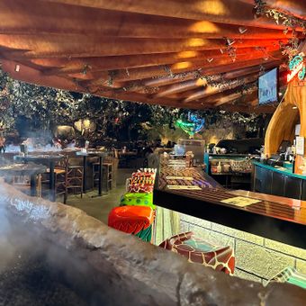 El área de comedor se activa periódicamente con efectos simulados de truenos y relámpagos que imitan una tormenta de bosque tropical. Estos momentos sorprendentes añaden un elemento teatral que muchos visitantes encuentran memorable.