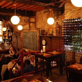 Het Karbeel es un restaurante en Ámsterdam conocido por servir fondue de queso y comida reconfortante en un ambiente acogedor. El espacio tiene capacidad para alrededor de sesenta clientes y cuenta con muebles de madera, iluminación suave y decoración simple que crea una atmósfera cálida y hogareña.