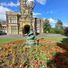 La escalera principal presenta la restaurada Ventana Butterfield, mientras el parque circundante mantiene elementos victorianos y un aviario activo.