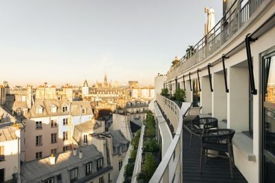 El bar de la azotea ofrece vistas de 360 grados de París, permitiendo ver monumentos mientras se degustan bebidas y platos del menú franco-mexicano.