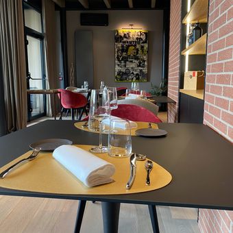 Establecido en 2005 por Christelle y Rodolphe Regnauld, el restaurante se encuentra en un antiguo punto de atraque de barcos utilizado para transportar mercancías.