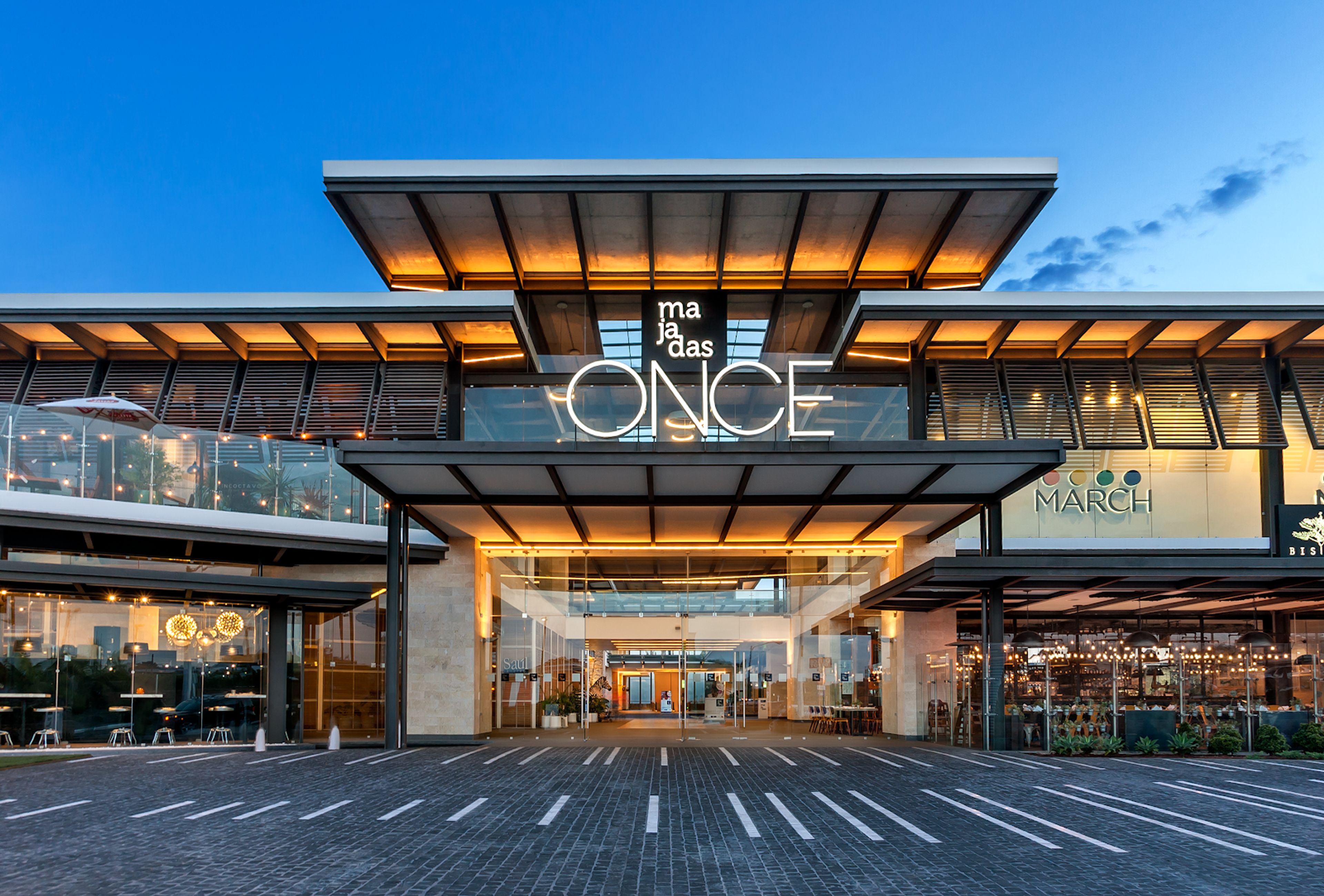 El complejo Majadas Once alberga numerosos espacios comerciales en dos niveles, con marcas internacionales y locales para diferentes necesidades.