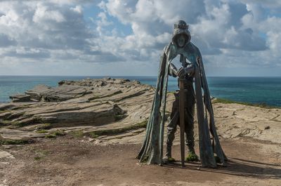 La escultura es inaccesible para sillas de ruedas debido a su ubicación en el acantilado y requiere transporte en helicóptero para mantenimiento, con visitantes necesitando planificar acceso caminando por los senderos costeros del Castillo de Tintagel.